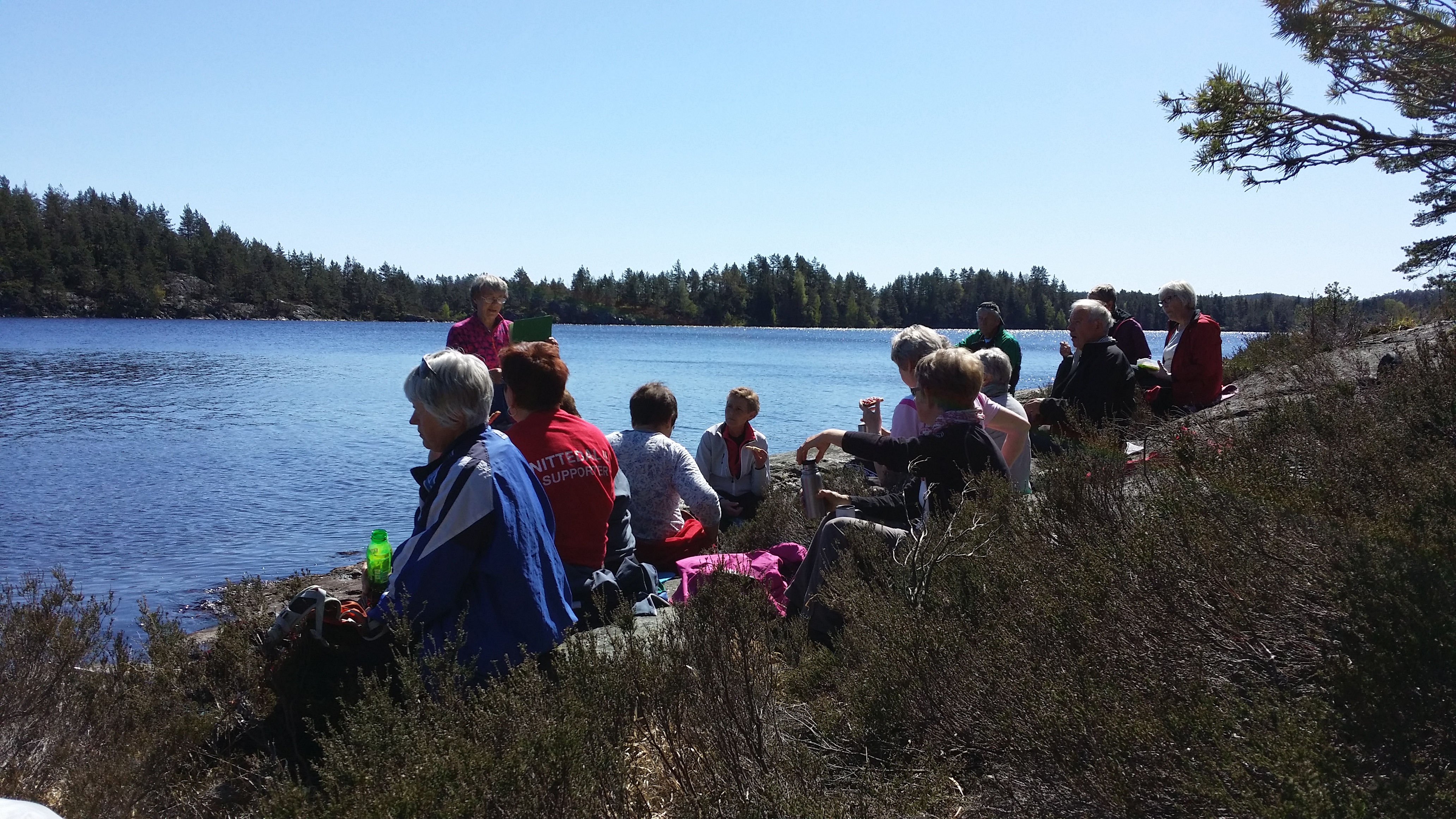 38 i tallet, fordelt i en mengde biler som studde seg sammen i bukta ved Tvieidet, fikk en nydelig tur søndag 10. mai. Turen gikk i moderat lett terreng, med litt våte partier, og med sol fra blå himmel. Etter å ha kikket på