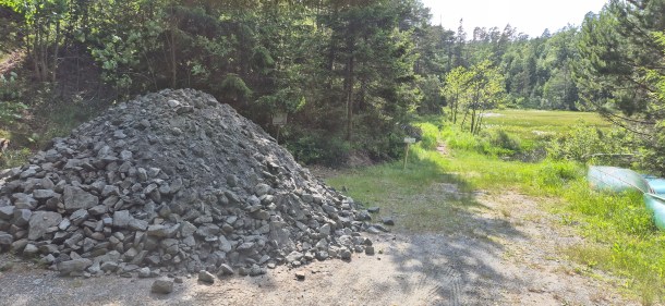 Vi har fått nødvendige tillatelser av grunneier, kommunen, fylkeskommunen og statforvalteren arbeidet er nå i gang. Vi har fjernet busker og trær og entreprenør har startet tilkjøring av masser.